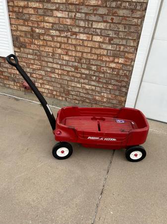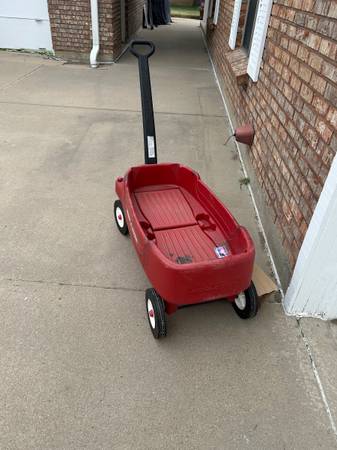 Red wagon for pulling the kids Seats flip up for 2 kids In like new condition 303-809-six three six 6