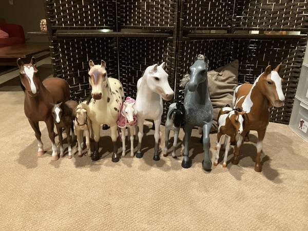 6 american girl doll size horses with 5 foals (one posable horse)