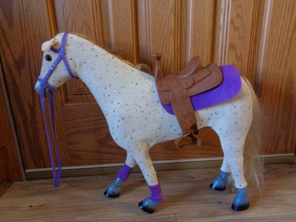 #1 My Life Appaloosa 20” Spotted Horse with poseable legs, knees, and feet. Comes with a saddle, bridle and blanket. Our life is a well-known brand in the industry. Horse is 18” tall x 21” long. It is designed to fit all 18” dolls, including American Girl and My Generation.