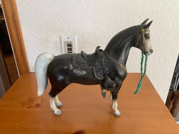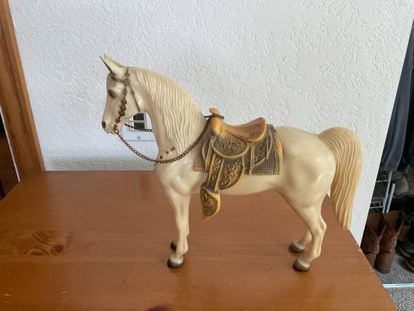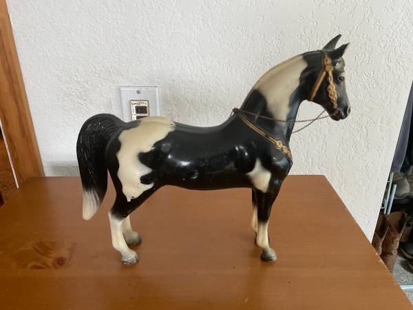I have 3 plastic toy horses that are about 10" tall and 11" long. They're not in perfect condition (one has a chipped ear), but they would still make a nice addition to anyone's horse play set.