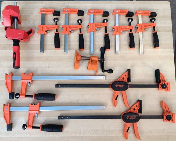 I have a collection of lightly used woodworking clamps for sale. This assortment consists of: