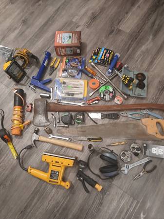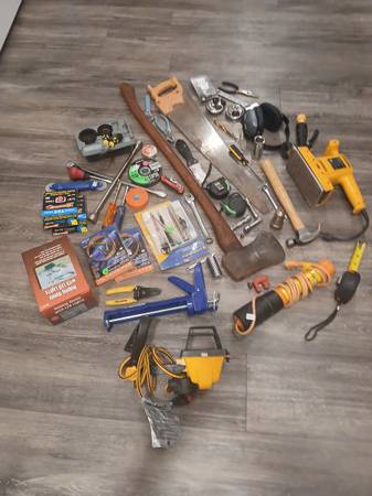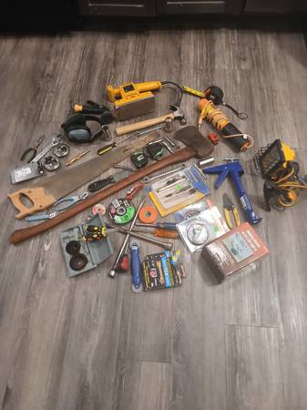 Ax . Hand saw. Wrenches. Grinding cut off wheels. 3/8 1/2 in. Disk locks with keys. Work Lights.. Rockwell sander. Everything works!!! 40 bucks takes it all!!! Call Curtis Arvada