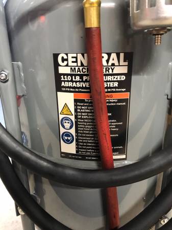 Central machinery 110 lb. tank purchased from Harbor Freight.New Never Used. Pressurized abrasive blaster. Cash only.