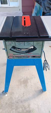 Great running tablesaw. 125.00 or best offer. Yes, it has the hand wheel to lower and raise the blade.