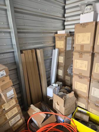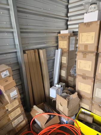 Please NOTE: the $100 price is just to get a number in there. The unit has well over $10,000 of items. I have a storage unit full of material left over from a new apartment building. I've been selling stuff but I'm traveling quite a bit right now and don't have time. See photos. Hundreds of LED light fixtures, lighted mirrors, bath and door hardware, electric fixtures, plumbing fixtures. Take a look and make me an offer.