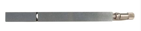 The 1/8" thick blade is made of Mn65 (ASTM 1566) high carbon tool steel hardened to Rockwell 60-64. Mn65 is similar to A2 tool steel, but it has somewhat less wear resistance. I measured the width of the blade at exactly .50" (1/2"), .007" wider than the body of the plane, which means the blade projects about .003" beyond each side of the body. This provides the clearance necessary to make clean, square cuts.