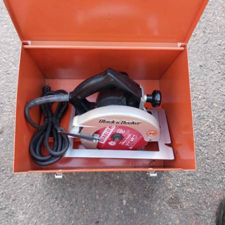 We have for sale a nice undamaged and fully functional Black & Decker 7‑1/4" Builders Sawcat - Circular Saw W/ Case. The saw powers on and runs awesome. This saw was well cared for and includes a metal storage case. All of the adjustments on this saw move and operate properly. See pics for more details. Sold As Is.