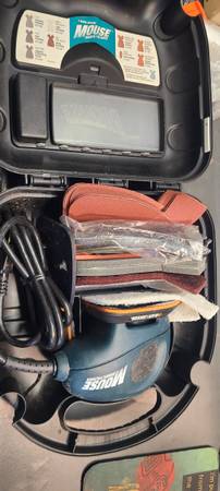 Black & Decker Mouse Sander Polisher in Molded Case - New Unboxed New and Unused - Full compliment of papers and textures for sanding and polishing. Various grit plus scraper to help with...