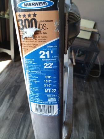Werner Little Giant Ladder. 21' Extended, 15' 6" A frame, 67" for transport.