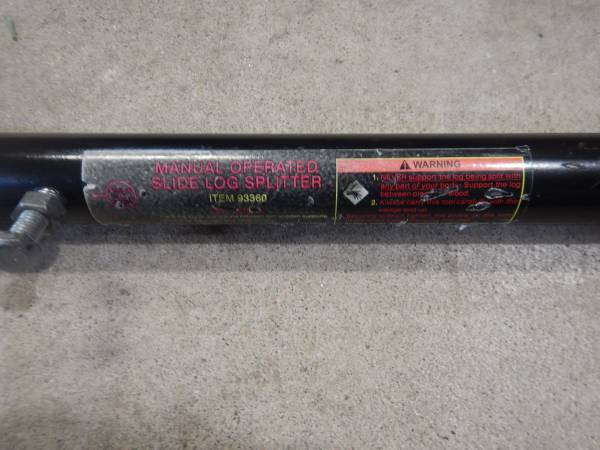 In store we have an undamaged previously used Manual Slide Log Splitter - 93360. The log splitter slides properly. The wedge is undamaged. The comfort grip handle is also undamaged. See pics for more details. Sold As Is.