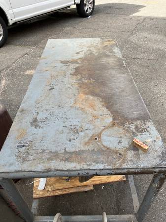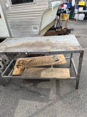 THIS METAL WORK BENCH IS EXCELLENT FOR ANY GARAGE OR SHOP. HEAVY DUTY. 60 LONG 28" WIDE 33" HIGH. EXCELLENT FOR WELDING, CRAFTING OR ANY INDUSTRIAL PROJECT.