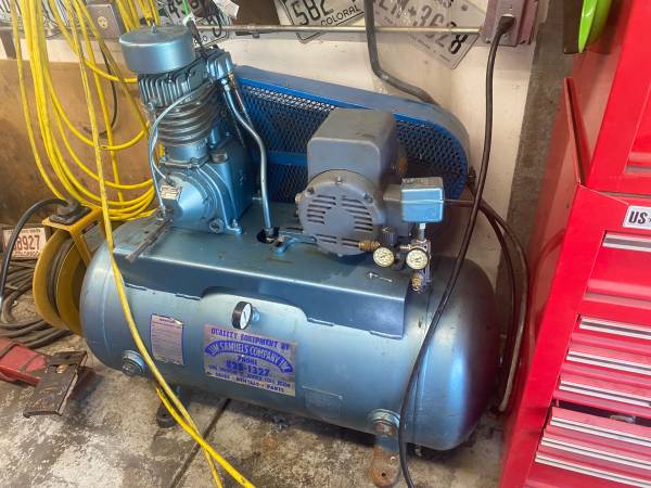 2 stage compressor High pressure 2 stage. Great capacity. New read valves in the pump unit. New bearings in the motor. Works great but that motor makes a lot of noise. It would need some looking at.