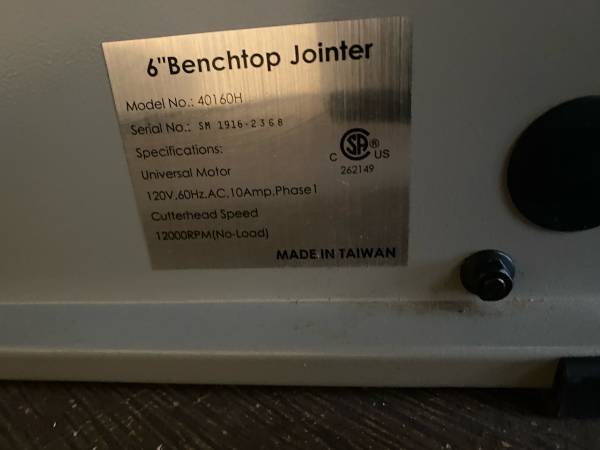 Jointer in perfect working condition. Set up to get you woodworking today.