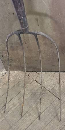 This vintage 4-tine pitchfork with a 53" original wood handle is a collectible farm tool valued for its craftsmanship, rustic charm, and historical utility. Its worth depends on condition, provenance, and decorative appeal.