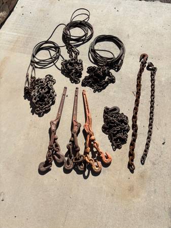 Set of 3 Wire Rope Log Wrappers,Binders,& Snap Chains for Log Truck