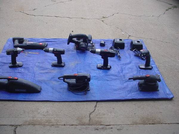 These all came from an estate sale. At this time the Black and Decker sanders are the only tools that I have tested. The Craftsman tools are untested. I have no batteries to test the Craftsman tools. I have ordered one for test purposes, It will go with the tools if I sell all the Craftsman tools at the same time. If you have a good, fully charged 19.2 volt battery for Craftsman tools and you want to come inspect the tools and plug your battery in to them, I am fine with that! I would really like to sell everything at the same time. If you buy it all, I will throw in a tote to carry it all in! Let’s get together, you can look it all over and make me an offer.