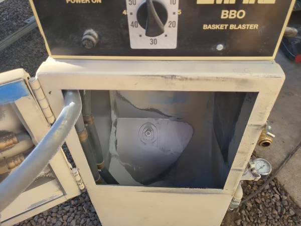 Put your small parts (nuts, bolts, screws fitting etc) into the basket, turn on the air and set the timer and it will bead blast them like a little mini bead blasting dish washer