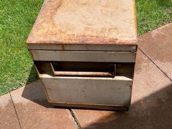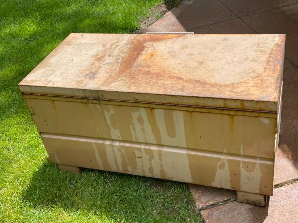 Older style with TWO included padlocks. Been outside but hinge still works great. New $850. I'll get right back to you! Kirk
