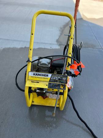 Karcher 2.5 GPM, 5.0 HP Honda engine, cash only. Includes 25 ft hose, hose handle, nozzles, etc. complete