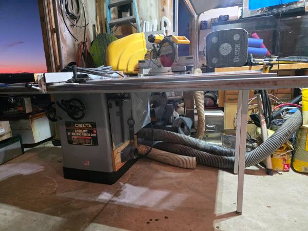 Delta Unisaw w/ 50" Biesemeyer Fence. 5HP 3PH. Saw is in excellent condition ready to work, not some old rusty piece of junk. Comes with deluxe Uniguard & a 1HP Grizzly Dust Collector.