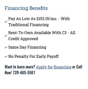4. Financing options at competitive rates. As well as a newly added Rent to Own option.