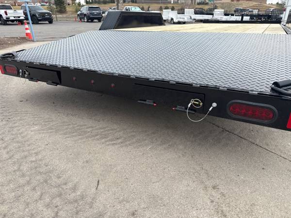 D Range Tires (225/75R15) 3 1/2" Formed Crossmembers Stake Pockets Wood Deck 5' Tuck Under Ramps Cold Weather 7-Way Plug LED Lights 7k Jack 2-5/16" Adjustable Coupler Industrial Grade Polymer Finish 1 Year Frame Warranty