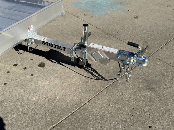 ALUMA 5410 TILT STANDARD FEATURES 2 INCH COUPLER A-FRAMED ALUMINUM TONGUE, 4 INCHES LONG SAFETY CHAINS SWIVEL TONGUE JACK, 800 LB CAPACITY 6 INCH FRONT RETAINING BUMPER EXTRUDED ALUMINUM FLOOR...