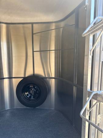 MAVERICK 2 HORSE 2-5/16 BULLDOG COUPLER BREAKAWAY SYSTEM WITH BATTERY 7-WAY RV PLUG SAFETY CHAINS ALUMINUM FRONT SKIN ALUMINUM DIAMOND PLATE GRAVEL GUARD ON FRONT ALUMINUM WRAP ROOF WITH CAP...