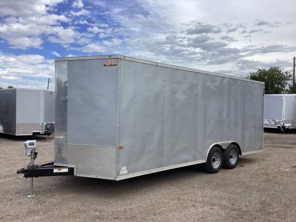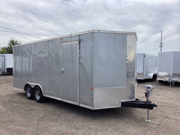 Rock Solid Cargo Trailer - USED 2022 Model 8.5x20x7 Enclosed Car Hauler/Cargo Trailer Tandem 5200lb Axles 9990 GVWR Work Bench in V-Nose, E-Track on walls, Painted floor,Power Electric Tongue Jack...