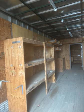 45’ long X 102” wide workshop trailer. Trailer is wired for power and lights. It has many shelves, bins, and cabinets and counter tops. Could be converted into a living space fairly easily. Trailer is being sold as a storage / workshop trailer. No title, bill of sale only. All carpentry was done professionally. Many of the bins are filled with screws, nails and other fasteners. Local delivery available. Please call if interested.