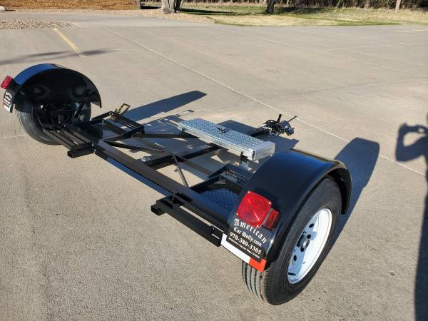 Brand New Swivel Car Dolly, Delivered Right to Your Door for price You see in ad. 8 1/2 or 9 ft Wide (9ft is $100 more) Heavy Duty, Will handle Any size car up to a Full Size Pickup or Van, including All Mini Vans which got Much wider in 2,010. Our Dollies Swivel And Have REMOVABLE RAMPS to Prevent Hitting AND DAMAGING The Rocker Panels or going through the Floor Pans. Our Ratchets Release Down And AWAY from the air Dams and Spoilers So You can release them And So they Don't Wipe out the Vehicle while Your loading it. Includes fully adjustable Wheelnets and a Strap to tie Your steering wheel. These Dollies have Electric Drum Brakes and EZ lube Axles with 6 ply Steel belted Radial tires. We are one of the Only Companies that use a 6" drop axle to get the Deck Low enough for EZ Loading and will allow You to load a Prius or M Cooper without scraping. We also have a Spare tire mount that can carry a Bike rack too that slides in the back of Your hitch for $150. The price You see for the Dollies in this ad Is Delivered To Your Door in the City posted on the ad or Nearby. We accept Checks, CASH Or Any Major Credit Cards. Please Call Or Text Anytime. Nine seven zero, Three eight zero, Three three zero five.