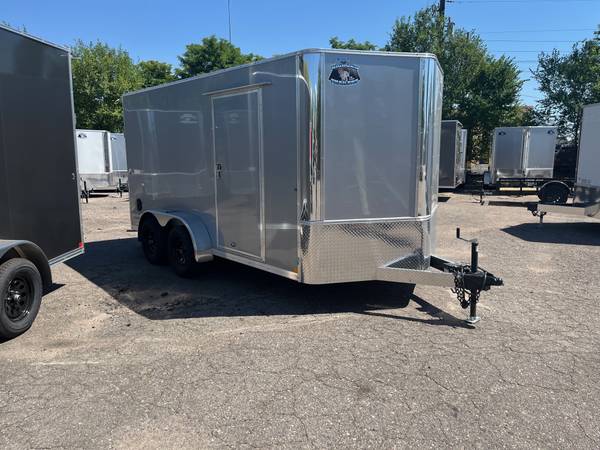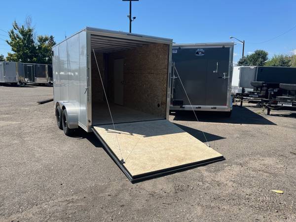 (SALE) This is a new 2025 upgraded 7x14+v-nose R&M Contractor Grade enclosed cargo trailer Tandem Axle Flat roof V nose ---FOR sales please call in advance!
