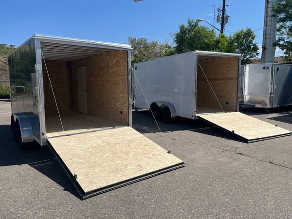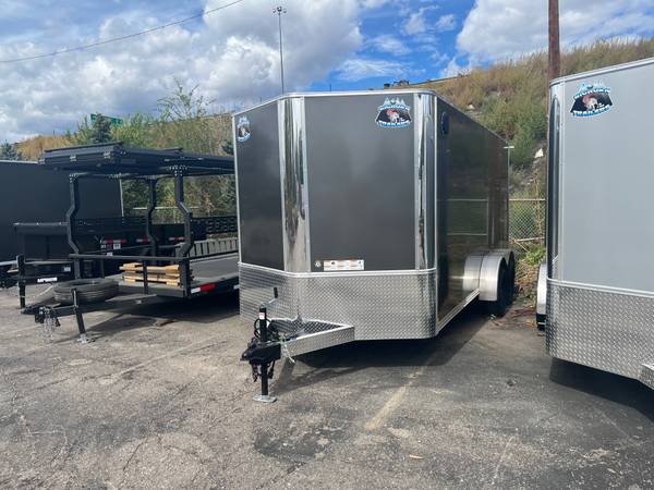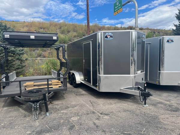 This is a new 2026 7x16+v-nose R&M Contractor Grade enclosed cargo trailer Tandem Axle Flat roof V nose located at our Wheat Ridge store on sale ---FOR sales please call in advance!