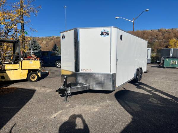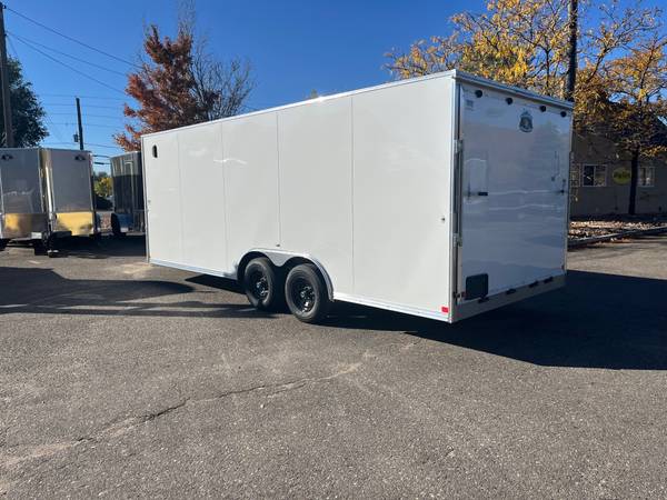 This is a new 2026 8.5x20+v-nose R&M Big Horn enclosed cargo (car hauler) trailer on sale due to slight ding in front v-nose---FOR sales please call in advance