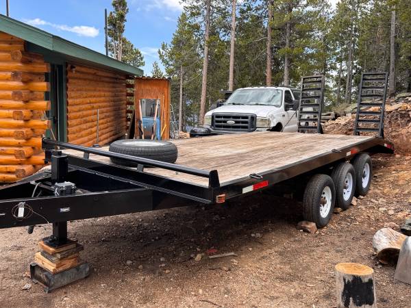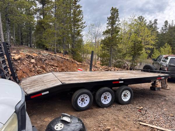 Heavy duty triple axle dove tail trailer with ramps. Coal Creek Canyon area near Hwy 72 and 93.