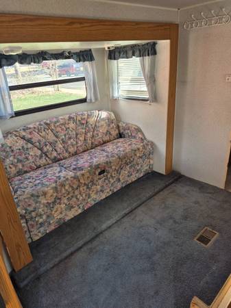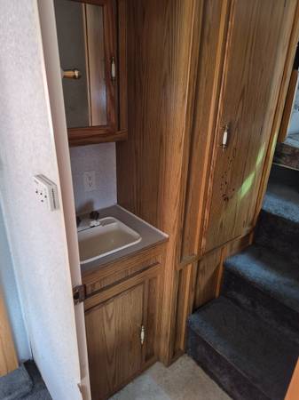 This 98 Shamira 5th wheel has had 2 owner first my father who purchased it new then me. It features 1 slide out, with sofa that converts into a 2 sleeper bed. Opposite sofa, is the 4 seater dinette that converts into a bed that sleeps 2 then behind the double action door that serves as door to bathroom/master bed or closes to have privacy for the toilet and shower (great for foot traffic, and bathroom sink use while using shower or toilet) then up the stairs is where you will find the master bed room with queen size bed. I have recently replaced the all four tires only 1 trip on them. I had the roof resealed a couple years ago replaced the awning a couple years ago replaced section of the floor as well it has a custom swing down spare tire holder and custom generator rack. I have wired it for outside speakers. I excellent condition overall asking $6,500.00 obo