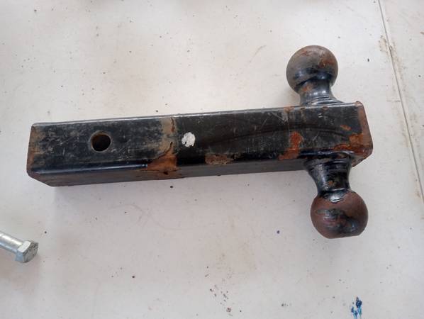 For sale: Double ball tow hitch 2 " and 1 7/8", total length 12" , 2" hitch opening. No pin. $10.00 cash only, meet up in Brighton.