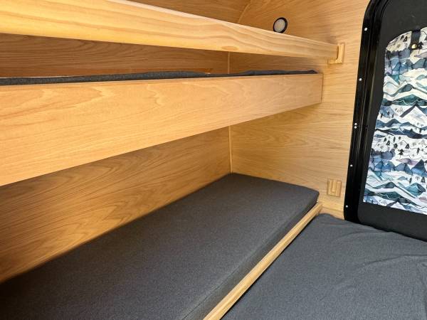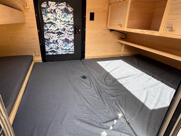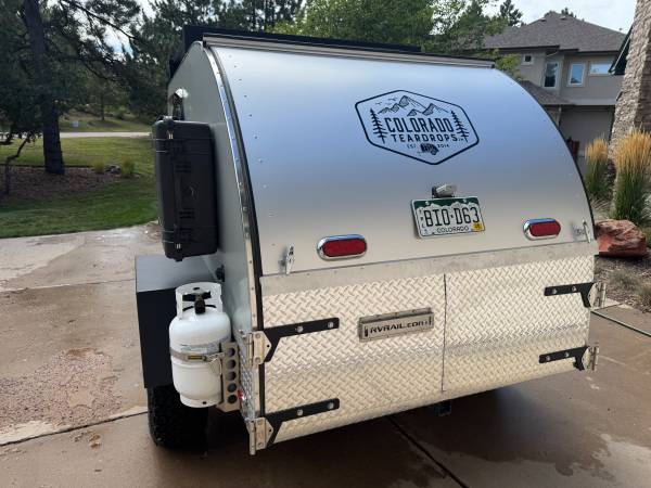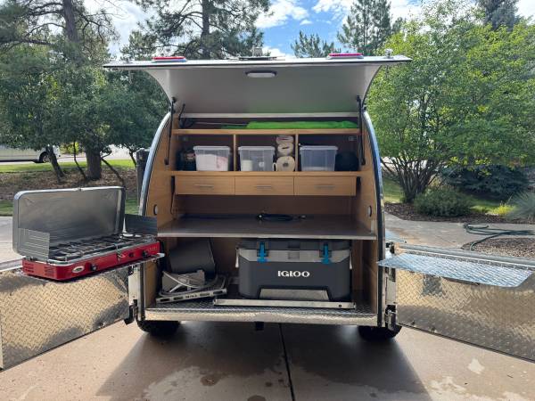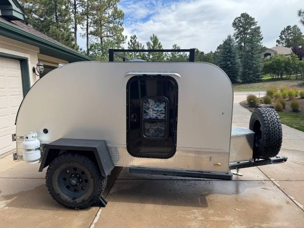 The Summit Pinnacle teardrop is very durable and was built for off-road use. The trailer was purchased in December 2020 and is in excellent condition with only 3,500 miles of usage. We are no longer using the trailer. Our total investment in the trailer, including accessories, is $36,000. The 3,500 lb Timbren axle-less suspension with 5,200 lb spindles handle the most serious bumps and terrain. Includes a Lock-n-Roll Articulating Hitch for eliminating any stress on the trailer frame. The Nerf Bar adds additional cabin protection. Hickory wood in the cabin interior and back galley shelving. The fully insulated cabin includes a queen size memory foam mattress and two bunk beds for the kids. Interior cabin includes a pop-up table, under the floor storage and interior shelving. LED lights. Trailer tongue box for storage. 11.6-gallon fresh water tank and exterior mount faucet and collapsible sink basin. On demand hot water/shower included in a pelican box attached to the exterior. Two Propane 11 lb tanks attached to side of the trailer. Roof rack is strong enough to support a roof top tent. Goal Zero Nomad 100w and 200w solar panels with Goal Zero 1500w battery. Custom window coverings.
