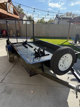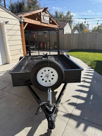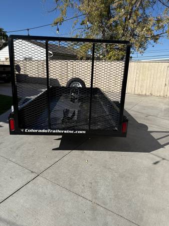 2014 trailer 5x10 steel deck, rear loading ramp, swivel wheel jack, led lights all around, front and rear motorcycle wheel shock, like new 15” inch tires, new spare tire, 3500lbs axle.Trailer is in excellent condition it was indoors most of the time. Colorado title. Asking $1600