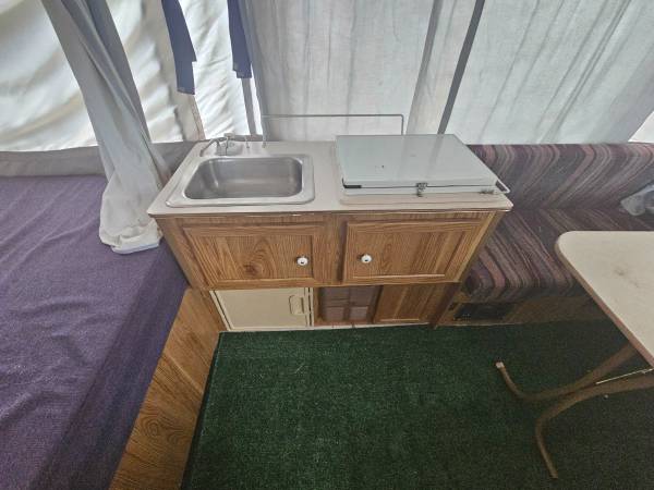 Looking to trade pop up camper in good shape for 2 cords hardwood cut, split, delivered firewood. Title in hand, new axle...good canvas, furnace.