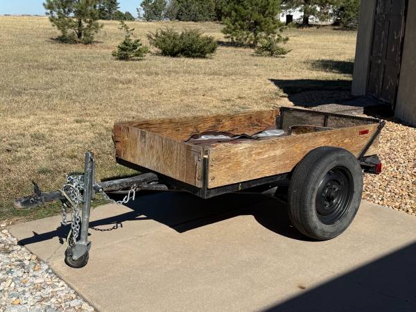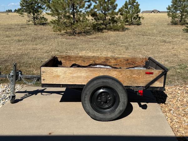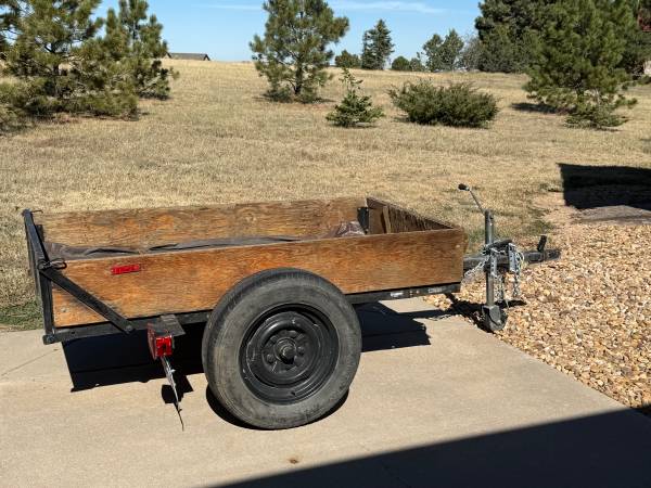 Metal frame, full size wheels, 6’ x 3 1/2’ bed, 10” side walls, registered/road worthy trailer. Lights and electrical hook up work perfectly. Serious inquiries & cash only Contact Brian at...