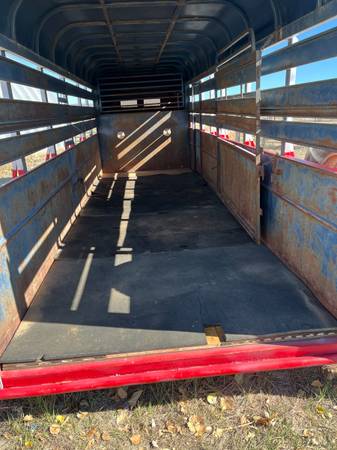 Built by Trailmaster of OK in 1987 it's heavy duty steel with a divider door, a front access door, a storage bin with its own door, and the rubber has about 1,000 miles on it.