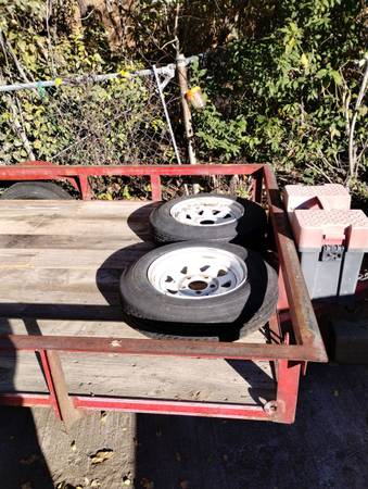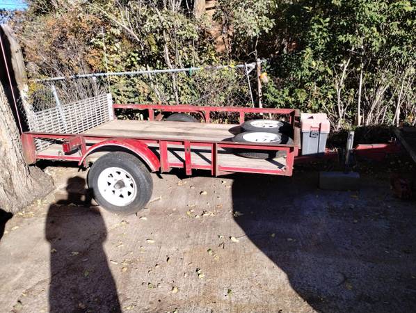 5'x8', 2003 Falcon H/D 9" deckrail, spare tire mount, dual spare tires &wheels, 3" drop tongue, front jack, tool or strap box, Large lightweight loading ramp. Wood floor replaced, 2000lb GVW. Title & 1 owner. Can haul 2 dressers, 3 dirt or off road vehicles. Text Don at show contact info