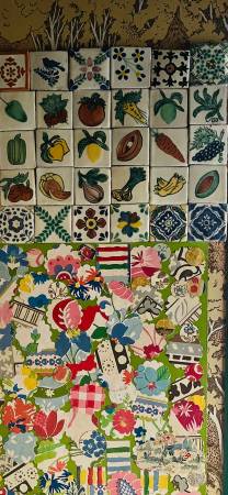 Needs one area over the door to be fixed up.. I pulled the tile down and it doesn’t look complete there .. could paint or hang a little woven tapestry