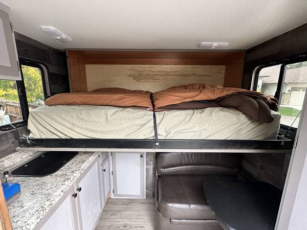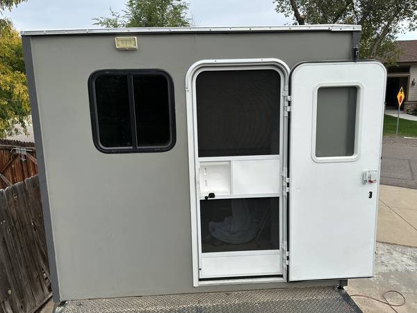 I built the camper for me and the dog, the bed is big enough for one person or maybe 2 smaller people, the size of the camper is 8' wide and 7' long, I made it so I can carry a sxs that's 12' long with the lift gate down and still get inside.