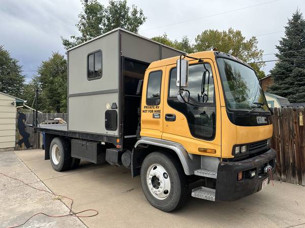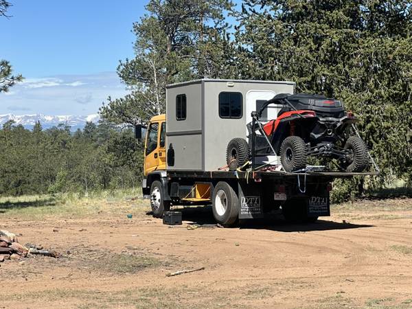 Custom toy hauler, started out as a 1999 GMC t7500, the truck has a 9speed eaton and a cat 3126 engine with only 26,000 original miles that has been ecu confirmed. The truck has a 16' flatbed and a 2500 lb lift gate that's 3foot 9 I believe it has a 33k gvwr rating I have added lights through out and a 12k winch.