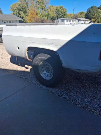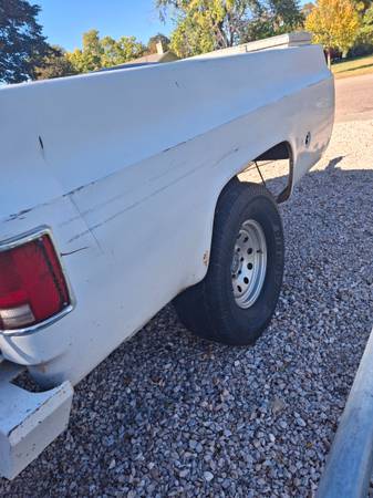 Homemade box trailer 1980 chevy scottsdale heavy duty 3/4 ton ready to pull needs nothing tires are good shape 305/70/16 comes with tool box $800 or trade what you got?