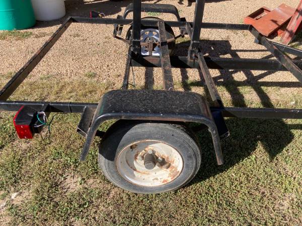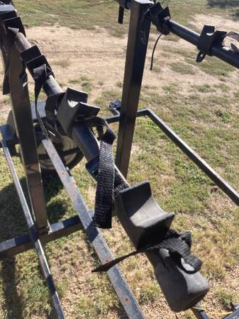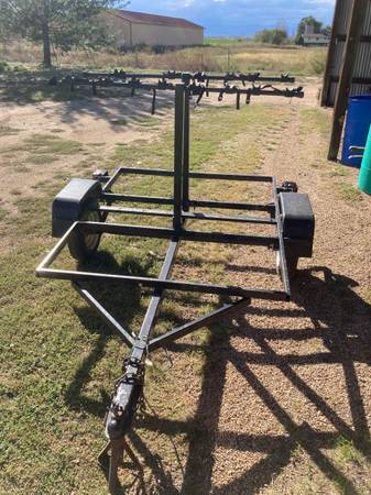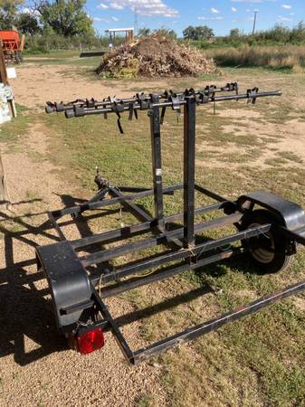 Bicycle trailer that can haul 8 bikes. Would be easy to also carry kayaks or canoes or??? or combination of canoe, bike, kayak or whatever. The vertical risers can be removed and then it would be a flat deck trailer...easily ad plywood platform. NO title, not sure it needs a plate. 68" long and 56 1/2" wide on the deck area. $500 or make me an offer.