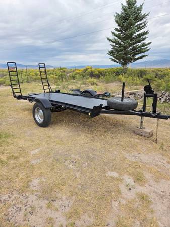 12' UTV/small equipment, small vehicle trailer. 42" inside rails 62" outside rails. Good 15" tires with spare. Takes 2" ball 4 pin flat connector. Clear Colorado title. $1000.00 cash only. Price is...