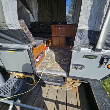 18' two 7500lb axel. Pop up camper attached. With solar panels, four 105lb battery storage. 30 gal. Water storage outside shower. Pale commode with tent cover. Two 30lb propane tanks and one 100lb...